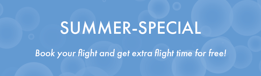Get up to 25 % flight time for free when you buy our promotional products: Experience several or longer flights or share your voucher with even more friends! We are convinced that flying together is the most fun of all!